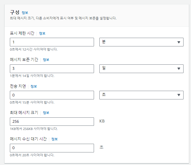 2. 메시지 동시 처리를 막기 위해 표시 제한 시간과 기타 설정값을 세팅한다.
