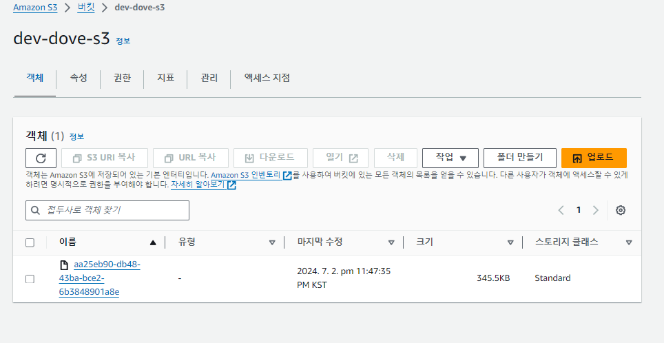S3에 가보니, 전송한 데이터가 파일로 만들어져 있다.
