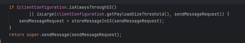 AmazonSQSExtendedClient는 설정 값에 따라 설정이 false이면, 메시지의 크기에 맞춰 S3를 사용할지 결정한다.