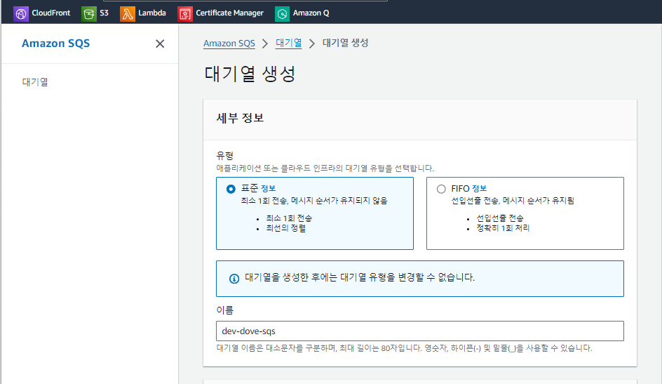 3. 다른 설정은 변경 없이 "대기열 생성" 버튼 클릭